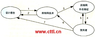 (4)用戶在使用因特網業務時,會對業務和應用提出新需求,從而影響因特網的外在特征,進一步對因特網設計理念產生影響。