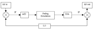 對于這種方式,首先需要對RF信號下變頻,數字化,然后進行衰落仿真,之后再把該處理后的信號經數模轉換后上變頻到RF信號輸出。對于通信中的測試,還需在其之后加入噪聲。(注:AWGN獨立于多徑效應,因此必須單獨增加。)