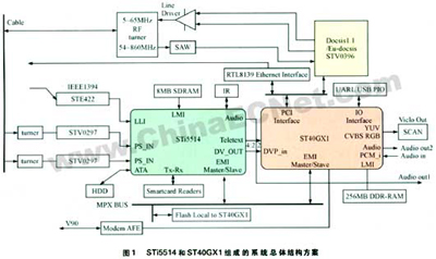 根據STi5514和ST40GX1的功能特點,圖1給出了本系統的總體結構方案。