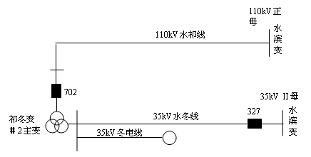 07—13 因祁冬變#2主變702C相流變漏油停電消缺處理, #2主變將由35kV水冬線轉(zhuǎn)供,調(diào)度發(fā)令合環(huán)調(diào)電操作,環(huán)路簡圖見圖一,7時(shí)28分,合上220kV水濱變水冬327開關(guān)(合環(huán)),合環(huán)運(yùn)行4分鐘后,即7時(shí)32分8.94秒祁冬變110kV線路備自投閉鎖,7時(shí)32分9.02秒主電源祁水712開關(guān)跳閘,跳主電源的同時(shí),聯(lián)切與地區(qū)電廠聯(lián)絡(luò)的聯(lián)絡(luò)線之一祁電389線,該聯(lián)絡(luò)線當(dāng)時(shí)運(yùn)行方式為空充線路,另一聯(lián)絡(luò)線冬電386線因開關(guān)跳閘線圈燒毀拒跳,未能實(shí)現(xiàn)聯(lián)切,也因此避免了地區(qū)電廠與系統(tǒng)解列事故發(fā)生,電廠出力12MW,跳閘前備自投動(dòng)作燈未亮,缺少備自投動(dòng)作信息,7時(shí)32分9.88秒備用電源祁長716開關(guān)合閘。7時(shí)32分10.88秒備自投放電。查歷史電流、電壓曲線,動(dòng)作前即