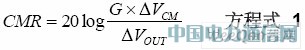 本方程式中,G相當于系統增益,VCM為相對于接地電壓同樣施加于系統輸入端的變化電壓,而VOUT為相對于變化VCM值的系統輸出電壓變化。