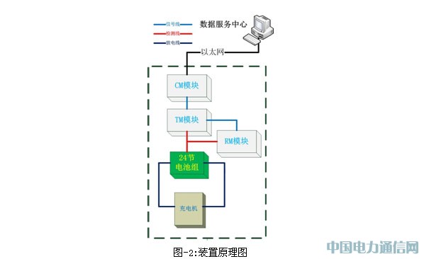裝置由控制單元、檢測模塊、內阻模塊、相關軟件和輔助部件構成,一個控制單元可接入多個檢測模塊,完成對不同只數和不同電壓規格的蓄電池組的監測管理。