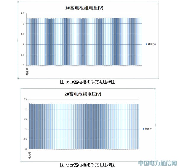 從圖3和圖4來看,兩組蓄電池組單體電池的浮充電壓一致性較好。