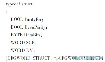 其中,ParityEn:校驗(yàn)使能位(TRUE:使能校驗(yàn);FALSE:校驗(yàn)禁止);EvenParity:校驗(yàn)?zāi)J竭x擇 (TRUE:偶校驗(yàn);FALSE:奇校驗(yàn));DataBits:數(shù)據(jù)位長(zhǎng)度,取值25或32;SCK:429半位采樣次數(shù),取值范圍12~16;DV:模塊內(nèi)部分頻設(shè)置寄存器,最大取值2047,不能為0.