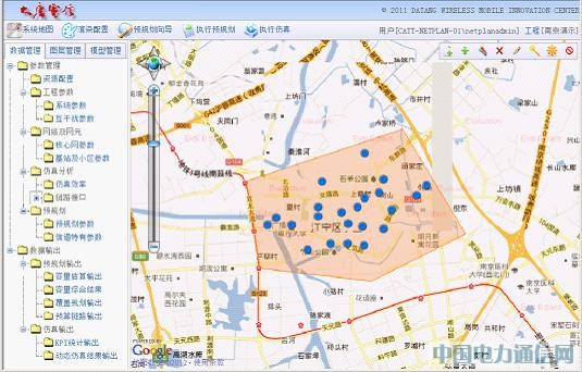 南京是工信部批準的六個TD-LTE規模實驗城市之一。其中大唐針對中國移動集團公司要求的核心區域完成了湖南路、市政府、奧體商務區、仙林大學城、江寧科技園、江寧大學城六個區域以及機場高速為主體的TD-LTE覆蓋方案。本次試驗網的200個宏站總覆蓋區域約50平方公里左右,平均站間距在500米左右,共站率在86%左右。LTE動態云規劃解決方案為實驗網建設提供合適的規劃方法和工具提供保障,保證實驗工作高效、有序的進行。圖7為南京試驗網在江寧科技園的規劃區域。