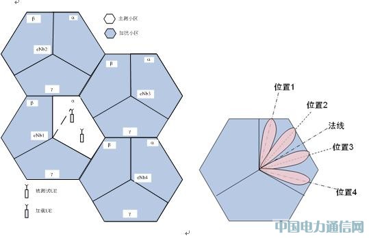 OCNG(OFDMA Channel Noise Generator)或稱模擬打樁方式,主要針對下行控制信道和業務信道進行,來模擬下行的干擾程度,而上行一般采用實際加載的方式來實現加擾。針對下行控制信道而言,主測小區發送真實數據,其余小區在下行控制信道上以OCNG方式滿功率發送無用數據,發送數據占用的CCE位置隨機;針對下行業務信道而言,一個小區設定4個波束,角度均勻分布在扇區內,各波束的角度保持不變。4個波束每個波束占用的PRB數目相等但按一定規則循環,各波束占用的PRB組位置變化周期不大于10ms。加擾比例為4個干擾波束總共占用的PRB比例(如:50%加擾,即干擾波束隨機占用總共50%PRB),每個PRB采用最大功率(PRB功率均分)。控制信道和業務信道的模擬打樁方式如圖8所示。