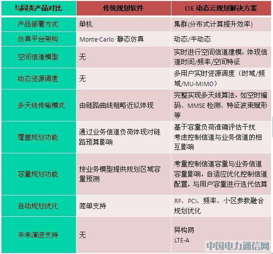 綜上所述,LTE動態云規劃解決方案相對于傳統規劃軟件優勢如表1所示