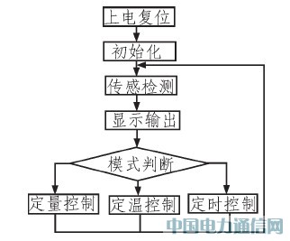 本系統(tǒng)采用單片機程序控制,功能有水溫水量顯示、定量上水、定溫上水、定時用水、自動上水、輔助電加熱、管道自動防凍、溢水自停、用水自動停止上水和停止電加熱,低水壓判斷等功能。主要功能介紹如下:定量上水功能:按"水量"鍵,定量摸式燈亮,系統(tǒng)進入定量模式,水位燈開始閃爍,此時繼續(xù)按"水量"鍵,水位燈開始循環(huán)變化,在希望的水量值處停下,水量設(shè)定完成。按"上水"鍵,上水燈亮,開始上水,當水箱中的水量達到設(shè)定值時,自動停止上水。定溫上水功能:接"升溫"或"降溫"鍵,此時定溫模式燈亮,表示系統(tǒng)進入定溫模式,數(shù)碼管閃爍顯示設(shè)定的水溫值。繼續(xù)按"升溫"或"降溫"鍵,直到期望值為止。按"上水"鍵,上水燈亮,啟動定溫上水功能,在上水過程中,再按一下"上水"鍵,將關(guān)閉上水。定時用水功能:首先按"水量"健,水位燈閃爍顯示設(shè)定的水量值,繼續(xù)接水量鍵直到欲設(shè)定的水量值;再按"升溫"或"降溫"鍵,數(shù)碼管閃爍顯示設(shè)定的水溫值,繼續(xù)按"升溫"或"降溫"鍵,直到欲設(shè)定的值;最后再按"定時"鍵,此時數(shù)碼管閃爍,此時定時模式燈亮,指示當前為定時工作模式,繼續(xù)按"定時"鍵,直到顯示的數(shù)值為欲設(shè)定的用水時間(1~24 h)。在定時模式下,當日照較好,太陽能已使水溫達到設(shè)定溫度時,不啟動電輔助加熱;當日照不足時,控制器會計算出合適的啟動電輔助加熱的時機,真正做到光與電自動互補,既節(jié)電又保證全天候使用。如要取消定時功能,按一下"水量"鍵或"升溫""降溫"鍵就離開定時模式,進入定量模式或定溫模式。定溫電輔助加熱功能:當水溫低于設(shè)定值時,按"電熱"鍵可在開啟/關(guān)閉電加熱間切換。防干燒功能:當水溫低于設(shè)定值,水箱中水位不足1/4時,即使按電熱鍵也不能啟動電加熱。溢水自停功能:上水15min后,水位無變化,將自動關(guān)閉上水。另外還設(shè)計有用戶用水自動推遲上水、停止電加熱等功能,水箱無水15 min后自動啟動上水功能。系統(tǒng)程序由主程序、多個功能子程序及一個中斷服務(wù)程序組成,程序流程如圖3和圖4所示。程序用PIC匯編語言編寫完成,程序代碼近2kB.