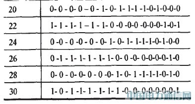 霍爾電路的工作原理是,在外磁場的作用下,當磁感應強度B超過導通工作點時,霍爾電路輸出管導通,輸出低電-半:若曰值低于釋放點時,輸出管截止,輸出高電半。因此在“凸槽”時鋼質活塞桿被磁化,磁感應強度曰增加,霍爾電路導通,輸出低電平,用“1”表示;在“凹槽”時輸出高電平,用“0”表示。以第1個霍爾元件為測量基準,從圖2所示時刻起,位移暈旃次變化b=2mm時,一個碼區行程內霍爾電路輸出的二進制序列如表2所示。分析可知,序列的標識碼為l 0000000 1,其前面或后面6位序列數分別為相鄰的兩個數值碼,這使它具有很強的容錯能力。標識碼每隔一個霍爾元件間距N在低位部分右移一位。值得注意的是,標識碼前面的數值碼代表磁性標尺當前檢測位置下一個碼區的值。