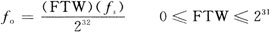 通過對FPGA編程,主要完成了對AD9959控制功能和串口收發功能。AD9959內部集成了4個DDS內核,每個DDS內核都集成了32-b的相位累加器和相位一幅度轉換器。每路DDS輸出的信號頻率可以通過下式來計算: