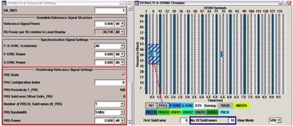 然后,LTE Release 8的后續演進是LTE Release 9,從信號物理層方面來看,Release 9主要在下行鏈路方向做了改進,主要增加了三個特性:“Positioning reference signal(定位參考信號)”、“Dual layer beamforming(雙流波束賦形)”、“MBMS single frequency network(廣播多播單頻網業務)”,R&S的信號源SMU200A能夠產生完全符合上述所有新特性的LTE信號。以定位參考信號的產生為例,信號源SMU200A允許用戶根據3GPP的規范修改多項參數,如發射周期、帶寬、功率等。圖3顯示了SMU200A產生頂位參考信號的配置界面和定位參考信號的分布圖。
