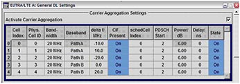 例如在LTE-A的下行方向,需要實現載波聚合,R&S的信號源SMU200A可以設置多達5個LTE載波,每個載波的參數可以單獨設定,完全可以滿足LTE-A的要求。SMU200A LTE-A 載波聚合的配置界面如圖4所示。