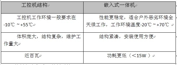 表1 工控機與嵌入式一體機對比