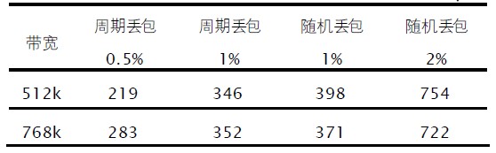 理論上講,采用本方法后,在網絡狀態良好時能做到音視頻傳輸中的完全同步。網絡狀態惡化時,隨著丟包率的增加,同步效果會稍微變差,其中隨機丟包比周期丟包對同步效果的影響更明顯,這是因為隨機丟包會引起更多的網絡抖動。而在幀率碼率和編解碼協議不變的情況下。帶寬越小,網絡越容易擁塞,所以帶寬降低時同步效果也會變差。