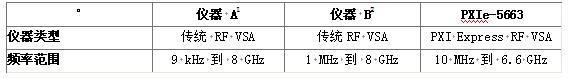 為了展示PXIe-5663 RF矢量信號分析儀的測量速度和精度,我們與一款行業領先的傳統儀器進行了一次巔峰對決(如表1所示)。比對試驗所使用的兩個傳統儀器均為較新的RF矢量信號分析儀(Vector signal analyzers, VSA),并且其價格比一個完整的PXIe-5663 RF測試系統要高出許多。