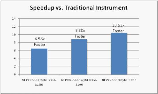 圖5. 與傳統儀器相比,NI 8353 1U控制器可以縮減83%的測量時間。