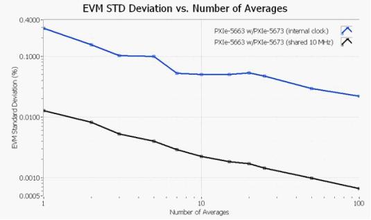 使用PXIe-5663 RF 矢量信號分析儀和PXIe-5673 矢量信號發生器,你可以很容易地實現優于1%的EVM測量。表3所示為更重配置下實現的均值和標準差。