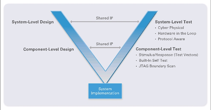 長期以來的預測趨勢揭示了整個系統(tǒng)設計流程中的設計和測試趨于統(tǒng)一,這兩個先前獨立的功能將被集成在一起。集成功能的明顯優(yōu)勢在于縮短了投入市場的時間并獲得更好的整體質量,而這些優(yōu)勢都歸功于在創(chuàng)建設計的同時集成了測試定義和實現(xiàn)。在系統(tǒng)設計過程中,從仿真到實現(xiàn)以及最終系統(tǒng)部署,都可以對這些早期測試平臺進行重用。