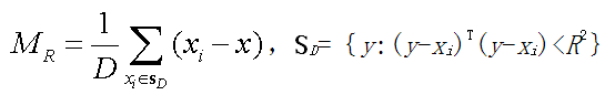 Mean-Shift算法是一個迭代的過程。對于d維空間的N個樣本點(diǎn),首先隨機(jī)選擇一個點(diǎn),并以這個點(diǎn)為圓心、以R為半徑做一個d維的高維球,落在這個球內(nèi)的所有樣本點(diǎn)和圓心都會產(chǎn)生一個向量,每個向量都以圓心為起點(diǎn)、以球內(nèi)的樣本點(diǎn)為終點(diǎn),計算出球內(nèi)所有向量的和,最終得出Mean-Shift向量。再以Mean-Shift向量的終點(diǎn)為圓心重復(fù)上述步驟。由同起點(diǎn)向量求和法則可知,Mean-shift向量最終將收斂到概率密度最大的區(qū)域[9]。Mean-Shift向量的基本形式如下: