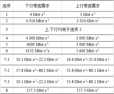 表2 不同的功能劃分點(diǎn)的速率要求