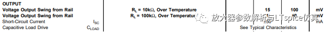 (2)信號到電源軌與負載大小有關,負載電阻越大(負載電流越小),到軌壓差越小。